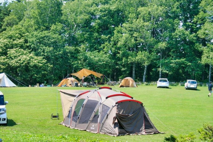 山に囲まれた大自然と多種多様なアクティビティ、徒歩10 分歩けば便利な施設やエンターテインメントもあるリゾートキャンプ場。地面は気持ちの良い総芝生で目の前につき抜けた大自然の景観が広がります。徒歩圏内に温泉施設やホテル内の施設もご利用できるので、ファミリーやビギナーキャンパーも安心して楽しく過ごす事ができます。手ぶらキャンプもOKな安心便利なレンタルサービスや売店販売の食材では、ルスツ産の羊肉や豚肉など充実のラインナップ。さらに野菜の収穫体験やキャンプスタッフによる体験講座も楽しむことができます。