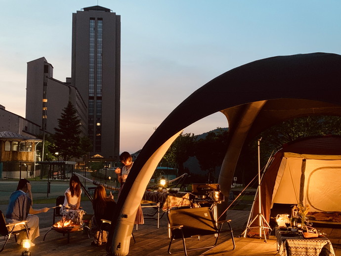 ホテルやレジャー施設も併設のキャンプ場。タイプも様々あり、お客様のスタイルにあったキャンプライフをお楽しみ頂けます。2021年7月からは、グランピングサイトもオープン!設備も充実満天の星空観察もおススメです。また、ホテルの温泉大浴場も割引料金にてご利用頂くことが可能です。