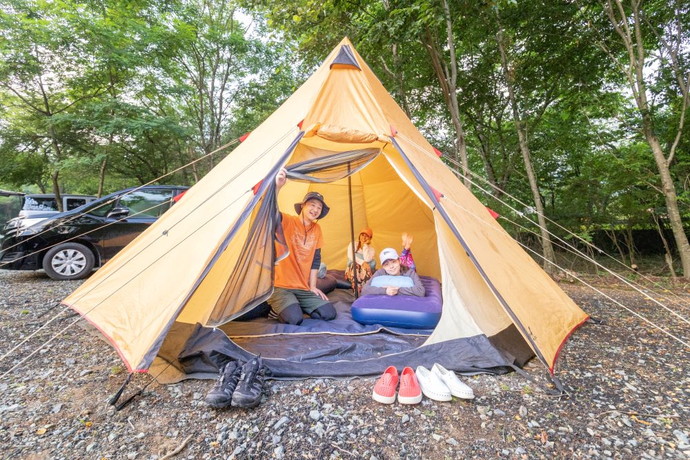 1日/限定3グループの少しオシャレな常設テントサイトは、ほぼ手ぶらでキャンプを楽しめます☆