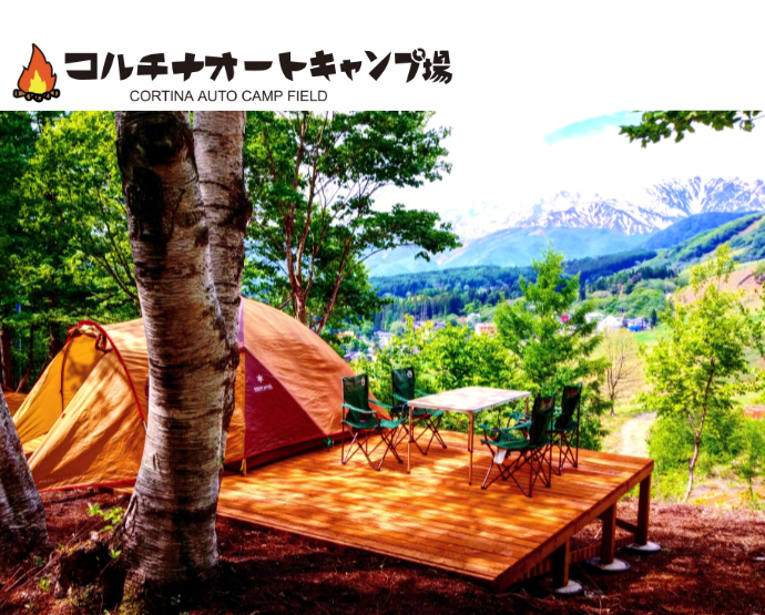 広々としたスキー場で、ゲレンデから白馬の山々を眺めながらキャンプを楽しめます。
