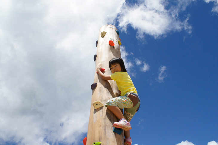 例えば、山梨県のサンメドウズ清里ハイランドパークでは、子ども向けの遊具を揃えた「アスレチックパーク」を期間限定で営業しています。ロープにつかまってターザンのように遊んだり、ゆらゆら揺れる丸太の橋を渡ったり、太い柱をボルダリングようによじ登ったり。子どもが怖がらずに挑戦できる遊具があれば、親子一緒にわいわい楽しむことができます。