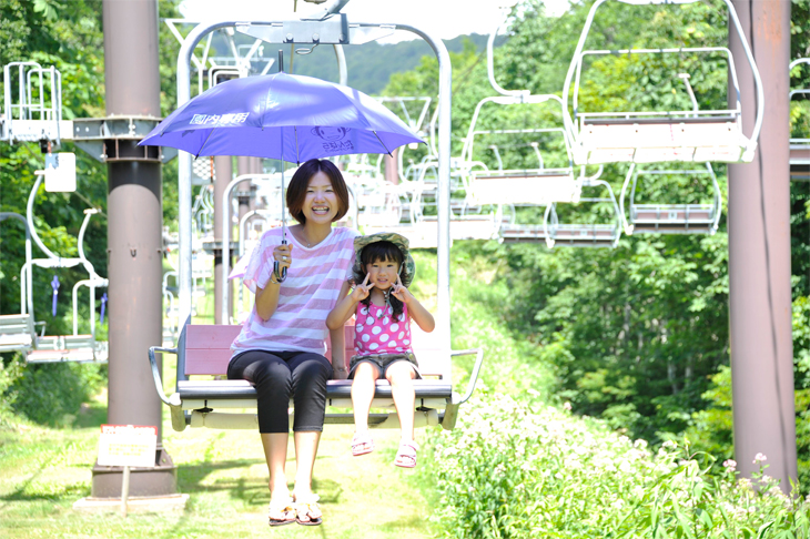 歩いて散策するほか、夏山リフトウッディラインに乗って空中散歩を体験できるのがスキー場ならではの魅力。ランチや休憩できる場所も多く、リゾートセンターやレストハウスのレストランでのんびり過ごしてもよし、屋外テントの日陰でピクニック気分を味わってもよし。人気のラベンダーソフトやクレープなどのスイーツも充実しています。