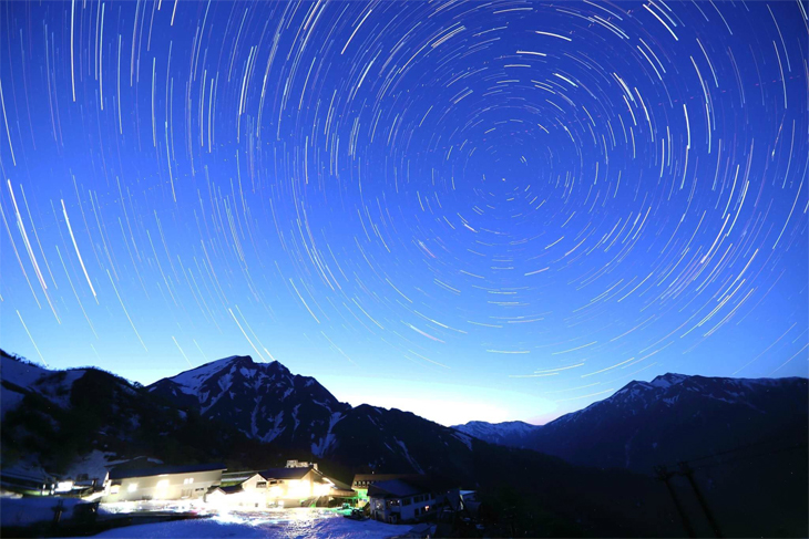 撮影する場所は、なるべく人工の光が入らない高原などの山間部が理想的。例えば、夜にゴンドラやロープウェイを運行しているスキー場を選んでもいいでしょう。