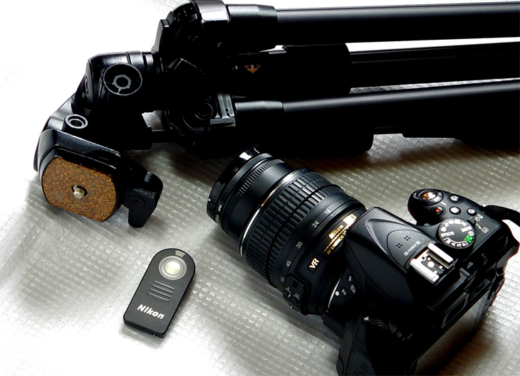 星空撮影の入門編として、三脚にデジタルカメラを固定して撮影する方法を説明しておきましょう。星空撮影で使うカメラは、高感度性能に優れたデジタル一眼レフカメラがやはりおすすめです。そのほかに準備しておきたいものは、広角レンズ、三脚、レリーズです。星空を撮影するときはシャッタースピードを遅くして長時間露出をするため、カメラを固定してブレを防ぐ三脚は必須アイテムです。レリーズは、カメラ本体にケーブルでつないでのシャッターが切れる器具のこと。カメラ本体に振動を与えることなく、シャッターを切ることができます。レリーズがなければ、セルムタイマー機能を使う方法もあります。