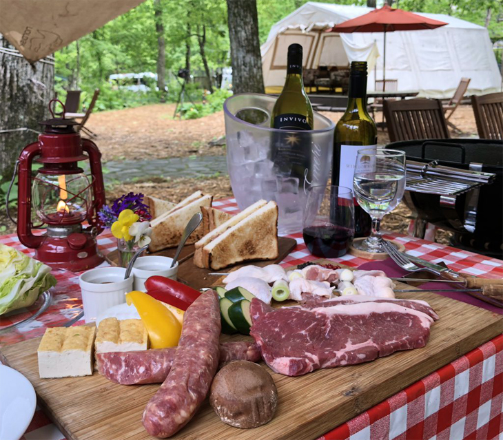 夜はテントサイトでBBQ、朝はホテルブッフェ!