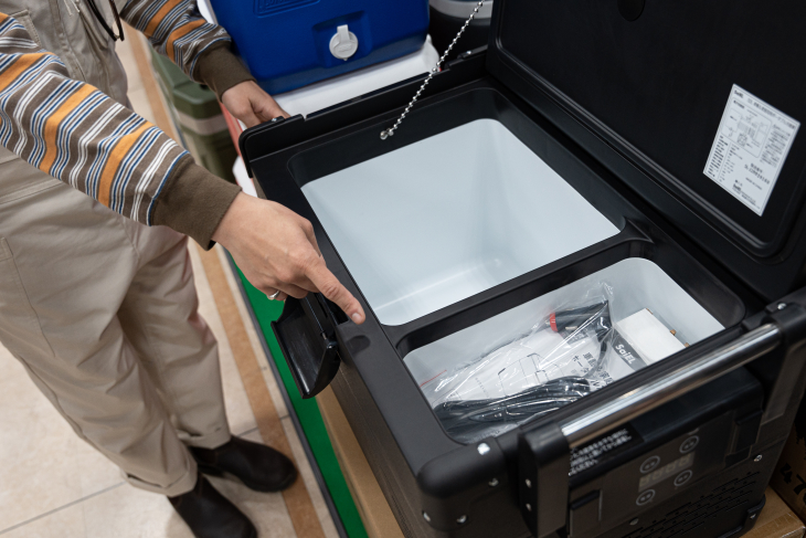 SAIELというブランドのポータブル冷蔵庫で32Lほどの容量になります