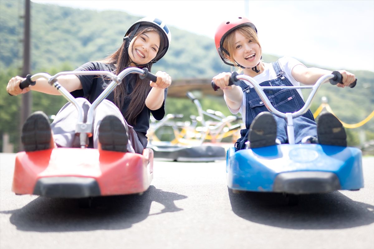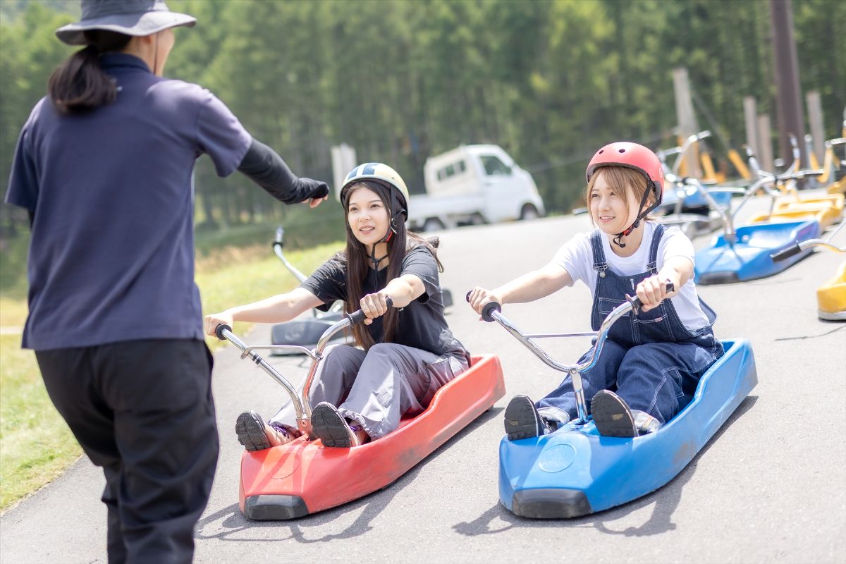 専用のカートを運転して、専用のコースを滑走していくが、カートにはエンジンなどの動力は付いてない。斜面の傾斜による落下していく力を利用し、スピードの調整やブレーキ、そして方向を変えるのもハンドル一つで操作することができるのだ。初めての場合は、スタッフから操作方法の簡単なレクチャーを受けてからスタート。