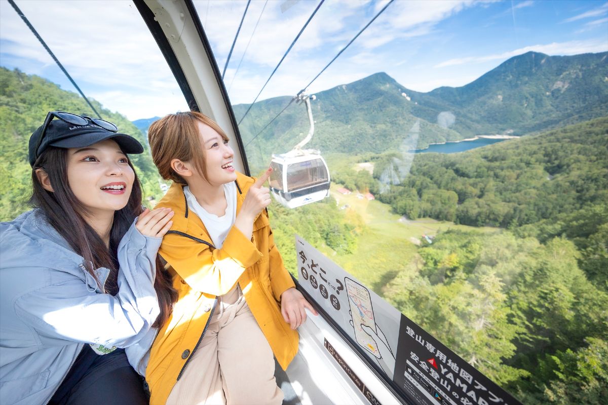 標高1400mの山麓駅から日光白根山ロープウェイ(8人乗りのゴンドラタイプのキャビン)に乗車すれば、片道わずか15分ほどで標高2000mの山頂駅まで楽々アクセス。乗車中の素晴らしい眺望も大好評。