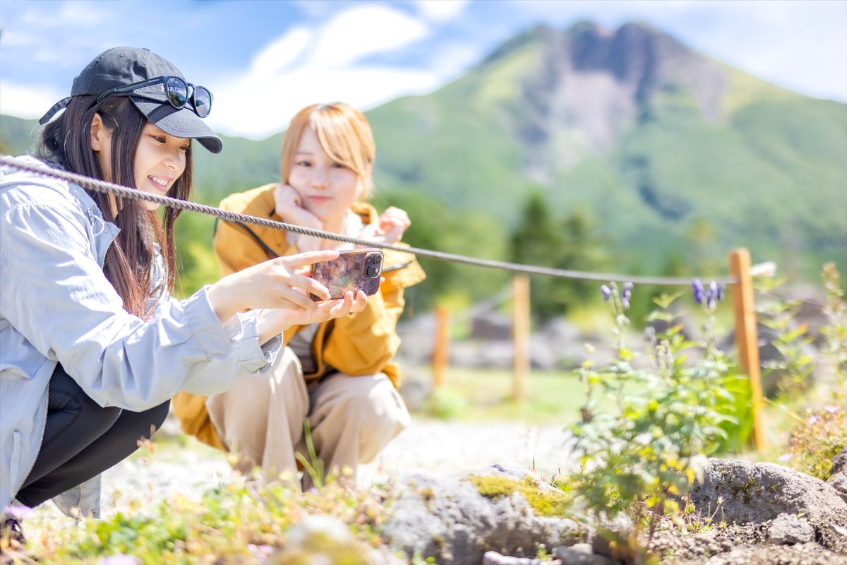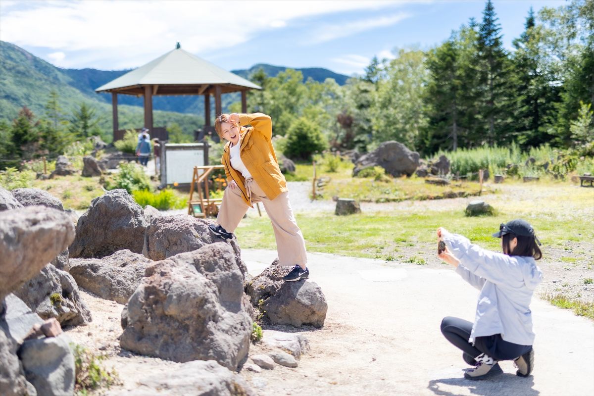 日光白根山をバックにいろいろな場所で、いろいろなポーズで写真を撮ってみるのもおすすめ。アイデア次第で絶好の映えスポットがたくさん!