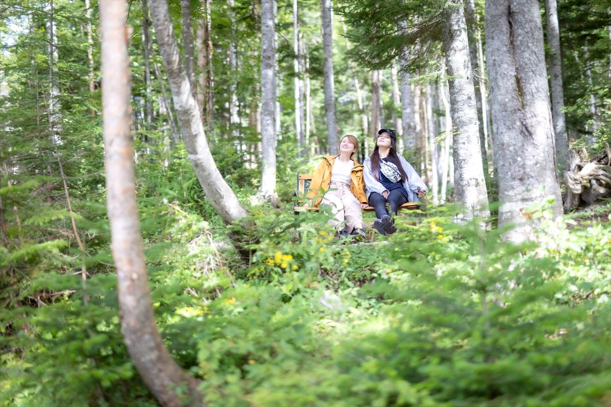 林の中にも写真が撮りたくなるポイントがいっぱい!ベンチやイスなどが置いてあるところもあるので、休憩だけでなく、自撮りなんかにも利用しよう。