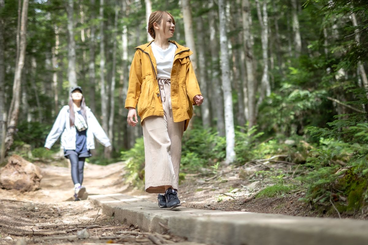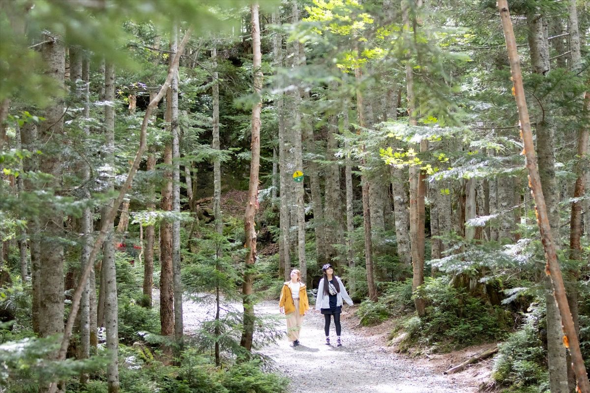 丸沼高原の大自然をもっと感じてみたい、楽しみたいと思ったなら、二荒山神社の先にあるゲートを通って、さらに深い森の中を散策できるルートもある。尾瀬の「燧ヶ岳(ひうちがたけ)」も臨める「自然散策コース」や六地蔵や大日如来など信仰登山の石仏群を巡る「史跡散策コース」。植物の名前を当てながら、気軽に散策を楽しめる「グリーンアドベンチャー」などもある、