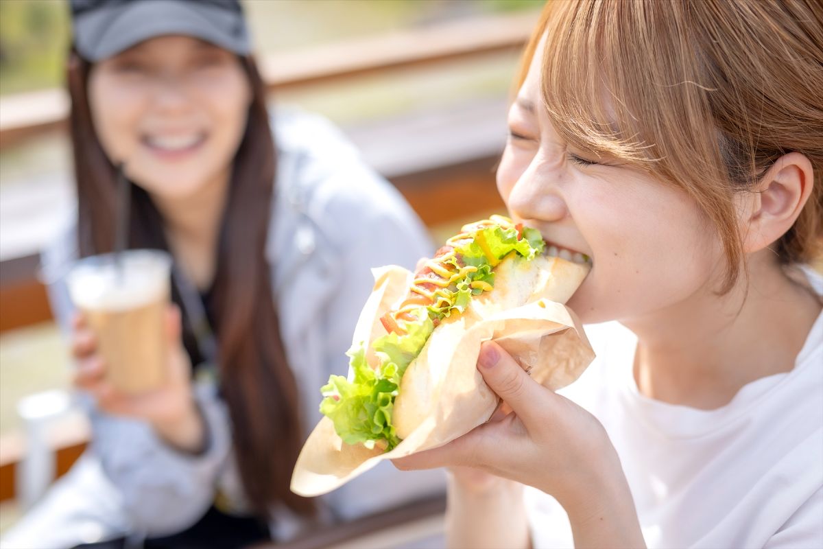ホットドッグに使われているソーセージは、ハムやソーセージ工房として有名な「シェモア」のオリジナルソーセージ。食べた苑子は味もボリュームも大満足で「遠慮しないで、大きな口でガブリと食べるのが、さらに美味しく食べるコツ!」と教えてくれた(笑)