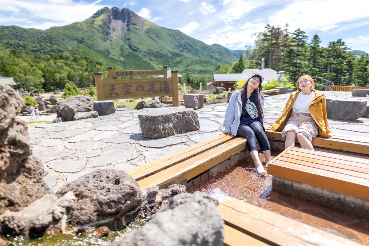 歩き疲れたりしたら、足湯もあるので利用しよう。素晴らしい景観を楽しみながら、涼しい風に吹かれながら足湯に足を浸けると、ふたりとも「たまらん!」と声を揃えた。