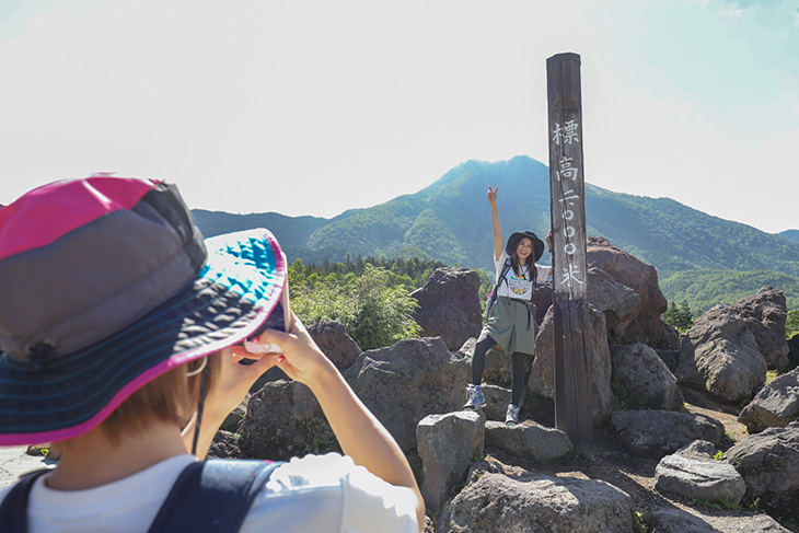 山頂駅に着いたら、日光白根山をバックに標高を示す標識と記念撮影から登山スタートというのがお決まりのルーティン(笑)。また、ここから先にはトイレがないので「山頂喫茶しらね」で済ませておこう。
