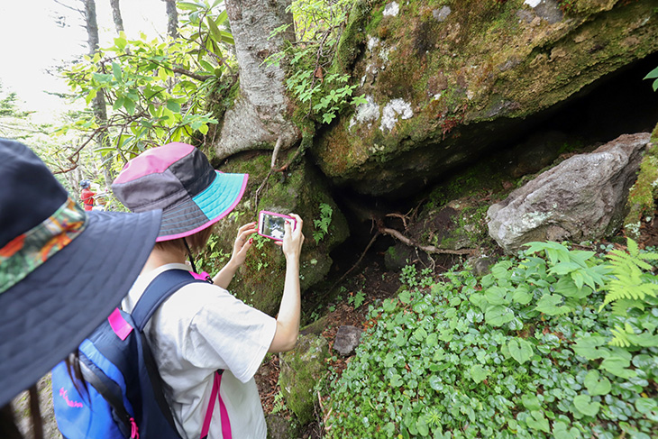 時々、岩の間も覗いてみよう。岩の奥、暗い場所で神秘的に美しく光を放っている「ヒカリゴケ」をぜひ見つけてほしい。
