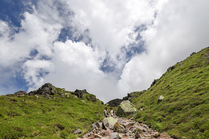 樹林帯で木々に囲まれながら歩くのは最初は気持ちよさを感じるものの、しばらく続くと変化が欲しくなってくることもある。ちょうどそんなタイミングの頃に森林限界を超える地点に着き、一気に視界が広がった時の気持ちよさは格別だ。空が大きく広がり、素晴らしい眺望で最高の開放感が得られる。
