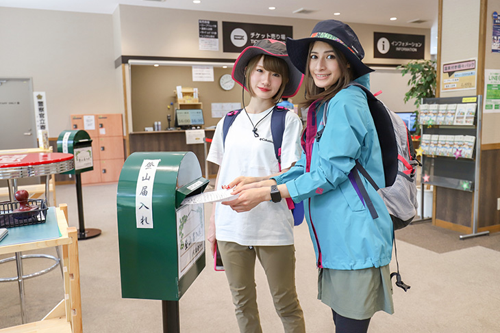 またセンターステーション内には登山届の用紙が用意されているので、ロープウェイ乗車前に忘れずに記入にして投函しておこう。登山届を書いたことがない人でも簡単に書けるから大丈夫。グループなら代表者ひとりが記入すればOK!