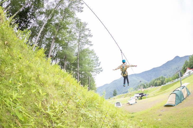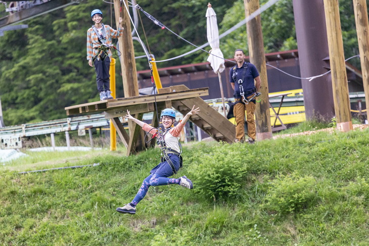 これまでキッズ・初級向きの「ビギナーコース」と上級向きの「エキスパートコース」とふたつのコースだけだったのが、今年から、距離の長いZIPラインが3本楽しめる「ジップコースが新登場。これまでの2コースの中間という感じで、より幅広いレベルに楽しんでもらえるオススメのコースだ。