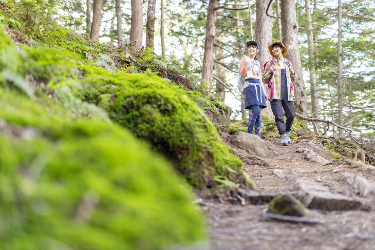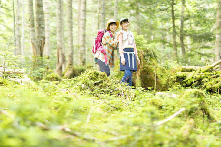 森の中は薄暗いところも多いが、木漏れ日が届いて、さまざまな種類の草木の葉や苔などの緑が、鮮やかに輝きを放っているところもある。そしてゆっくり歩いて、ゆっくり呼吸をするだけで元気になっていくような感覚になるような「フィトンチッド」効果も得られるかもしれない。たくさんの緑に癒やされてこよう。