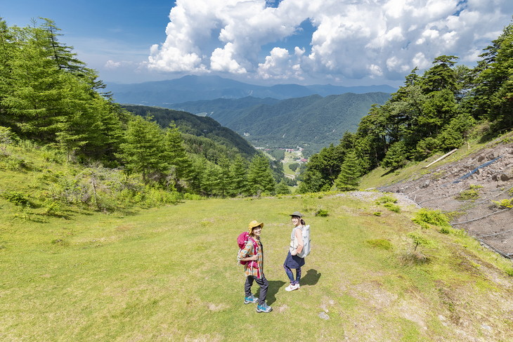 前半は樹林帯の中を移動するので、暑い日でも涼しく、快適に歩を進めることができる。途中、見晴らしのいいポイントに来ると心地よく吹いてくる風のありがたさと、登ってきた高さも実感できる。