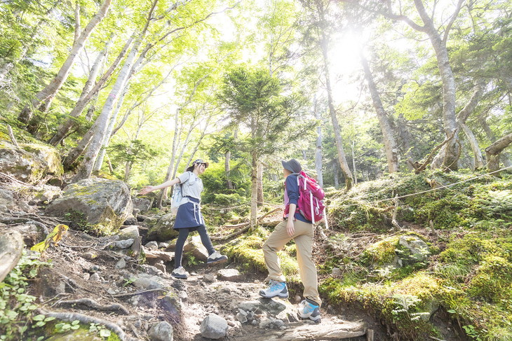 山頂駅からは日光白根山の樹林帯の中を散策するルートがいくつかあり、適度なアップダウンのある自然の森の中を散策するコースや信仰登山の石仏群を巡る「史跡散策コース」もある。ルートの選び方によって、時間や長さを調整することも可能だ。