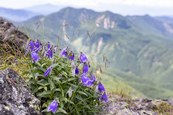 一見、きれいな花は育たないのではないかと思えるような環境に思うかもしれないが、足元を見るとしっかりと花が咲いていることもあるので探して見つけてみよう。時期によって開花している花の種類は異なるが、写真の花は「ヒメシャジン」。