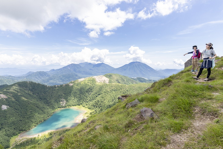 眼下には、日光白根山の外輪山に囲まれた五色沼があり、太陽の光が湖面に届くと鮮やかなエメラルドグリーンに輝く。水位によって、湖面の色が変化すると言われているので、訪れた時にどんな色で輝いているか、楽しみにしていてほしい。