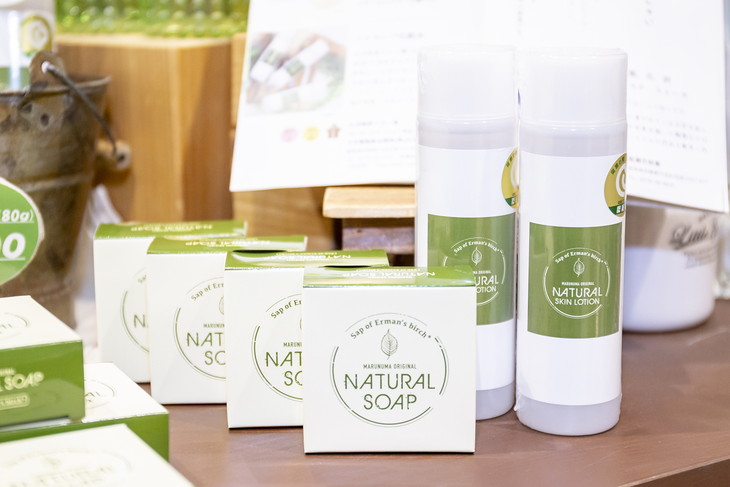 丸沼高原で過ごした楽しい思い出とともに、センターステーションの売店でお土産選びも楽しんで帰ろう。オススメは丸沼高原の敷地にあるダケカンバの樹液を使って作った「ナチュラルソープ」。天然成分のみで作られている石鹸で、優れた保湿成分により、乾燥肌の人に高い効果があると評判だ。石鹸だけでなく化粧水もあって、どちらも丸沼高原のサイトからも購入できる。またセンターステーション2階には温泉入浴施設もあるので、アクティビティで遊んだ後、登山後、キャンプ(現:丸沼高原キャピングバレイ)でも気軽に利用してほしい。