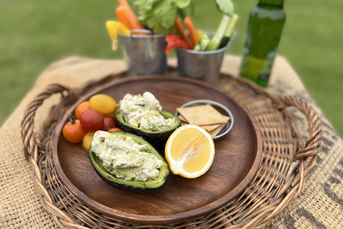 器にそれぞれ盛り付け、クラッカー、野菜を添える。