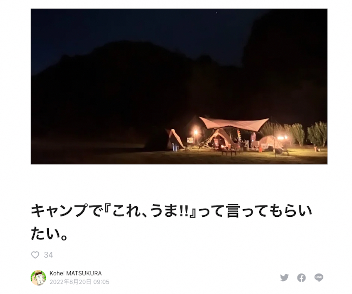 今回のキャンプイベント開催への思いや、ここまでの経緯についてはmatsukuracampさんのnoteをご覧ください。