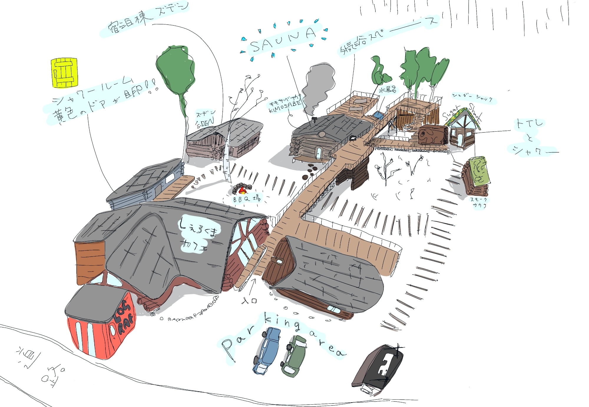 このしぇろくまサウナはもともと自宅兼事務所であり、ログハウスが敷地内に増殖し、ログハウス群となりました。