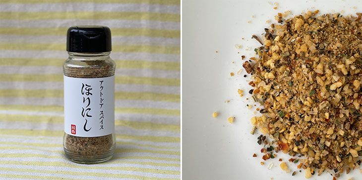 「ガーリックが効いたガツンと味がしっかりつくタイプ。たんぱくな味わいの鶏肉や少しクセのあるラムには断然「ほりにし」がオススメです! キャンパーの為のスパイスとして、和歌山県のアウトドアショップ「Orange(オレンジ)」の堀西さんがプロジェクトリーダーで開発されたものです」。