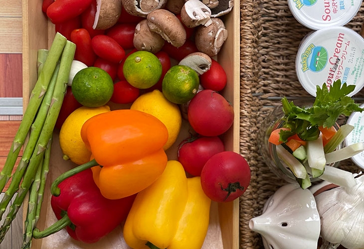 見るも鮮やかな季節の新鮮野菜は、メイン料理を引き立てるデコレーションとしても活躍します。サワークリームにスパイスを適量混ぜて野菜スティックをつけて食べるのもオススメです。ぜひご賞味下さい。