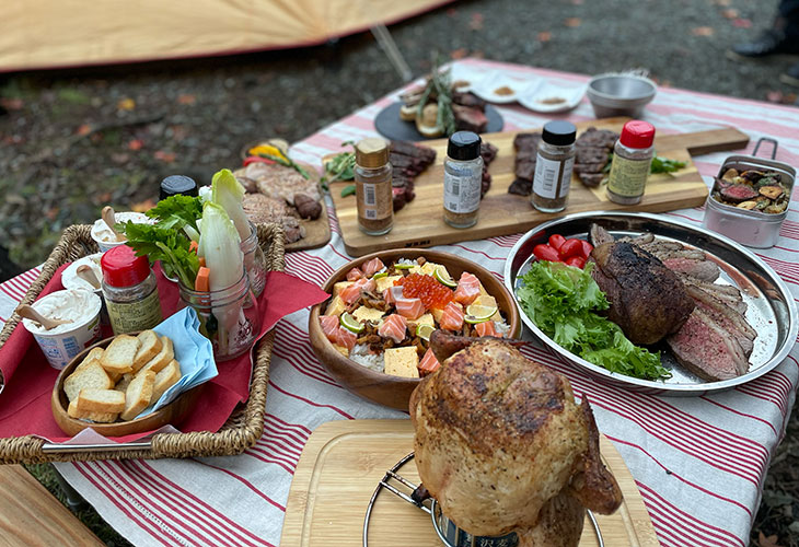 青空の下で食べれば、いつもの食事もより美味しく楽しいものに様変わり。心地の良い空間でアウトドアスパイスをつけて味くらべをするとはなんと贅沢なことでしょう。知ってしまった美味しい記憶は、ずっと脳裏に残るはずです。