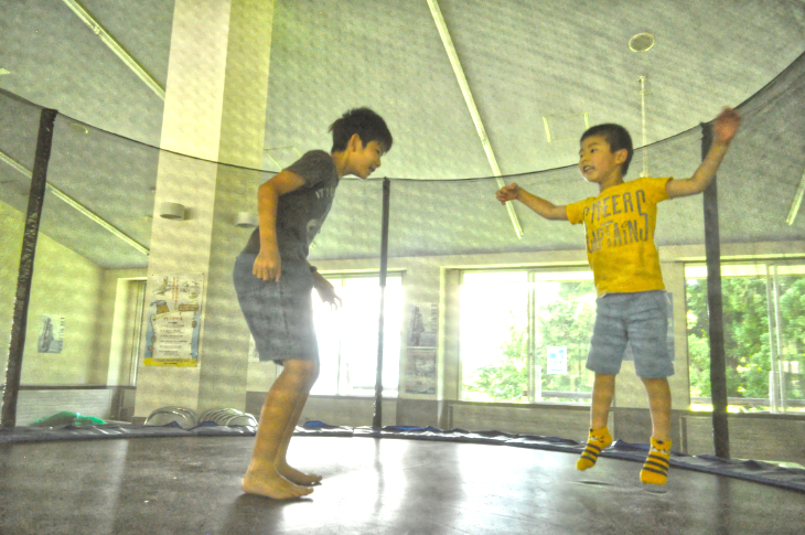 管理棟内にあるトランポリンや、フリーサイト横の林の中にあるスラックラインは無料で利用可能だし、管理棟のすぐ近くには暑さを避けて遊べる小川も。