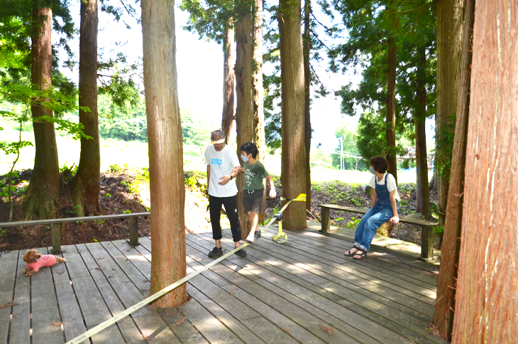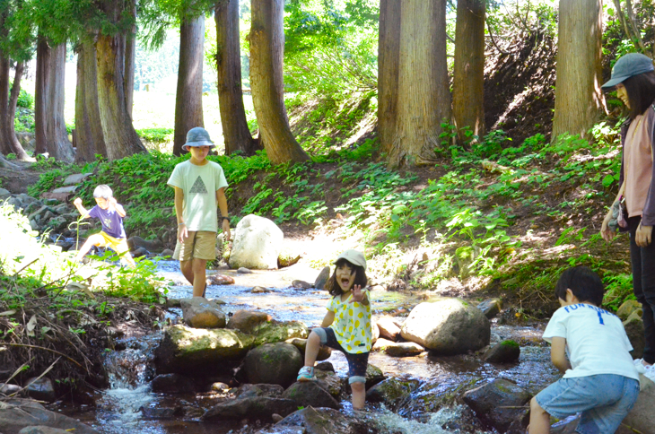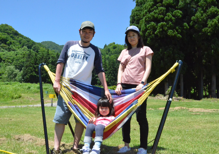 「スキー場でのキャンプだと、コースの部分をテントサイトに使うと木陰とかがないところも多真夏はたいへんかなと思ったけど、今回は常設テントとタープもセットだったから日陰も作れたし、スラックラインで遊べるエリアが木陰エリアだったり、小川もあって、暑さをうまく避けれたかな。