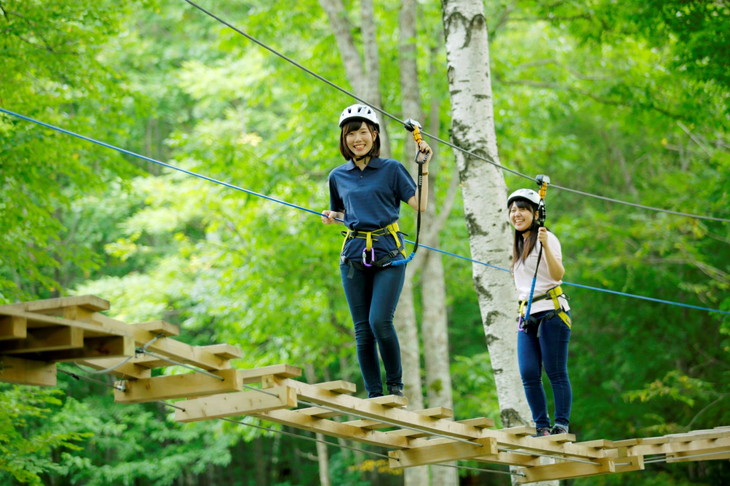 ホテルから1分の森では、「ツリーアドベンチャー富良野」が楽しめる。