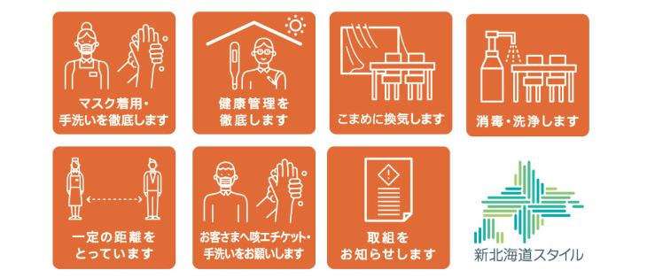 ルスツリゾートでは、新型コロナウイルス感染症の拡大防止のため、国が示した「新しい生活様式」の実践に向けて発表された「新北海道スタイル」安心宣言に基づき、「7つの習慣」に取り組むことを宣言した。