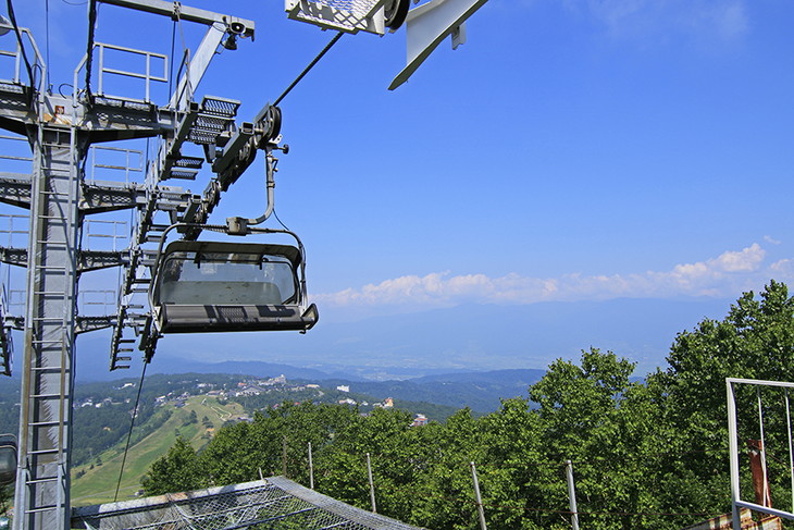 イースト観光リフトも営業し、爽やかな軽井沢の空気に包まれながら標高1155mの山頂まで空中散歩を楽しめる。