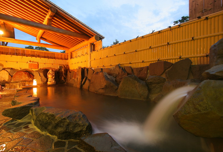 日帰り利用もできる天然温泉施設を完備し、ホテル敷地内から湧く自家源泉は赤みを帯びた塩化物泉で、湯は肌がスベスベになると評判だ。