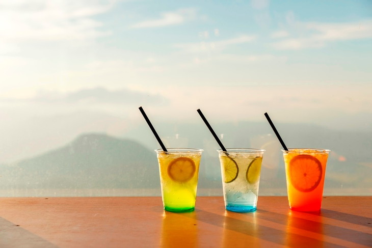 3種類のスカイソーダはテラスから見た空をイメージしたもので、シュワシュワの炭酸とスライスした柑橘系のフルーが喉を爽やかに潤してくれる。他にも、雲海をモチーフにしたオリジナルメニューなどが楽しめる。