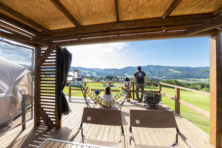 新潟のおいしい食材や地酒を買いだして、屋外の優雅なグランピングサイトでゆったりキャンプを楽めることも魅力だ。