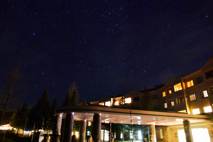 ホテルでは4月~11月に星空観察会「裏磐梯の星」も実施している。森にひっそりと囲まれたホテルは、夜になると静寂な闇に包まれ、星空観察にうってつけの立地なのだ。