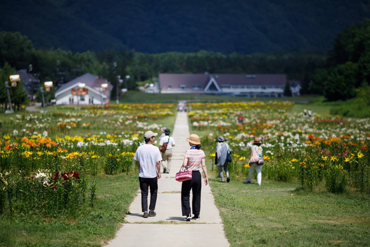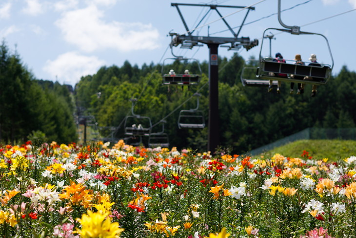 スキー場の斜面約2kmに渡って、約50万株400万輪のゆりが咲き誇る中での散策は非常に気持ちが良い。開園期間中には、全長1000mの「フラワーリフト」も運行。リフトでの空中散歩を楽しみながら上から眺める一面のゆりは圧巻だ。