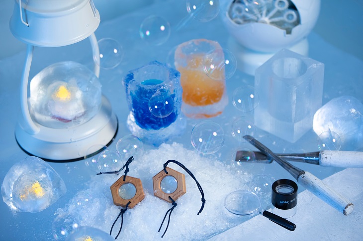 雪の結晶はひとつひとつがとても小さく、すぐに溶けてしまう儚いもの。その雪の結晶を特殊な方法でキーホルダーにし、持ち帰ることができるというワークショップを開催している。