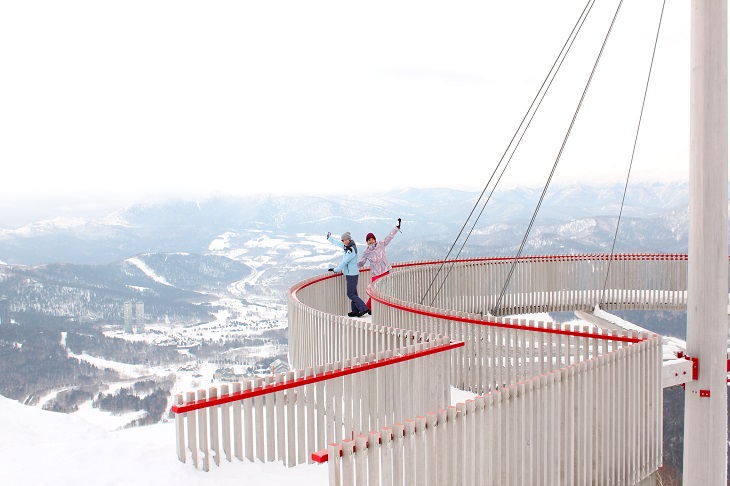 ここをゆっくり歩きながら、標高1088mからの絶景を楽しむことができる!眼下に広がるのは広大な星野リゾート トマム、遠くには日高山脈の山々が見渡せる。