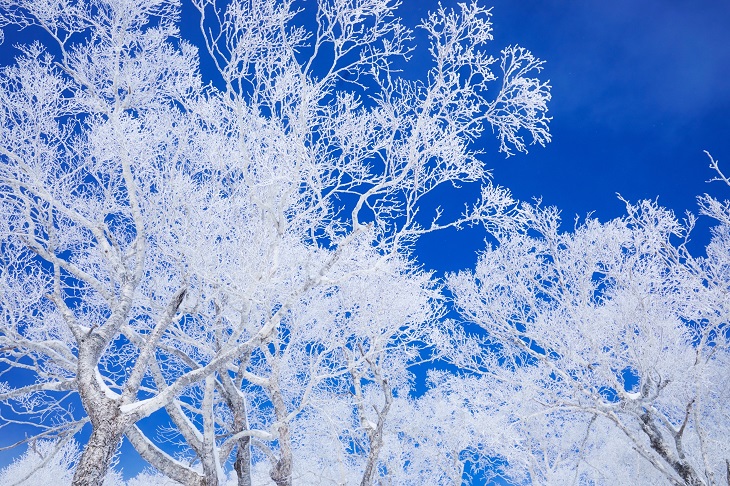 氷点下の環境で、空気中の水蒸気や霧が樹木などに着いてできる霧氷。この霧氷が織りなす幻想的な雪と氷の世界を体感できるのが、星野リゾート トマムの霧氷テラス!冬の極寒地ならではのこの絶景は、一見の価値あり!!