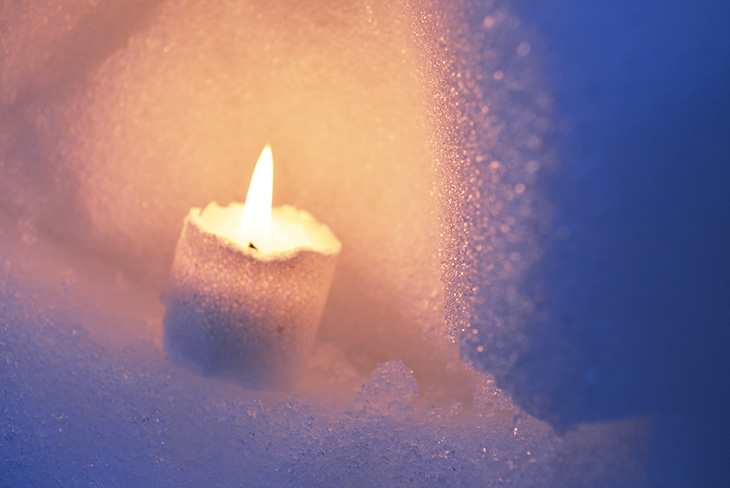 雪壁の穴にキャンドルが灯され、室内は明るくなっています。ゆらめく炎に映し出された室内はとても幻想的。
