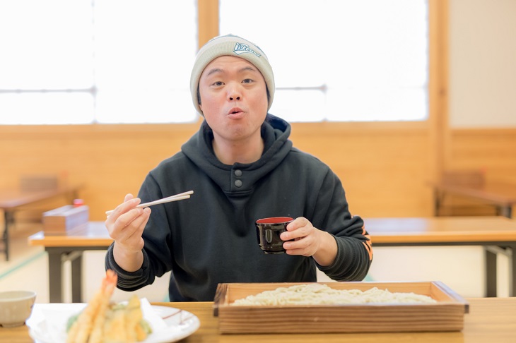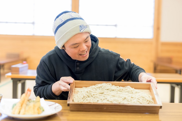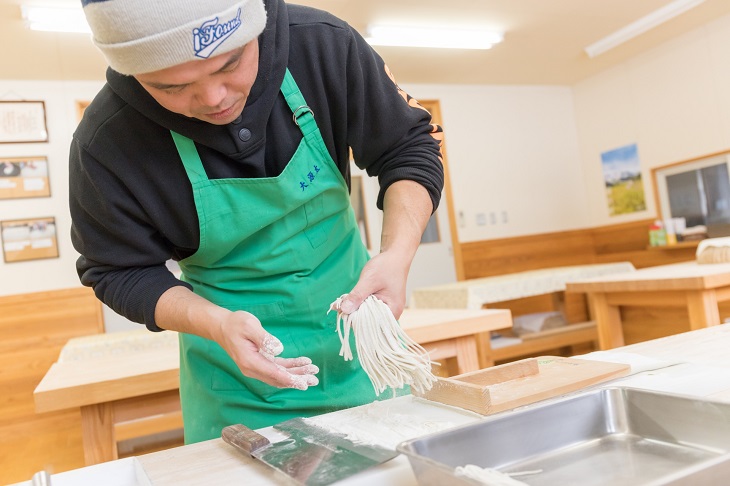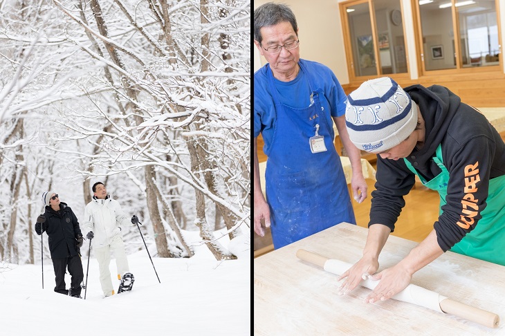 スノーシューを楽しんでお腹が空いていたからもしれないが、初めての蕎麦打ち体験も大満足の大成功。ちなみに自信がなければ蕎麦打ち体験をしないで、手打ち蕎麦を食べるだけという選択もできるのだが、ぜひ自分の手で打った蕎麦のおいしさを体験してみてほしい。