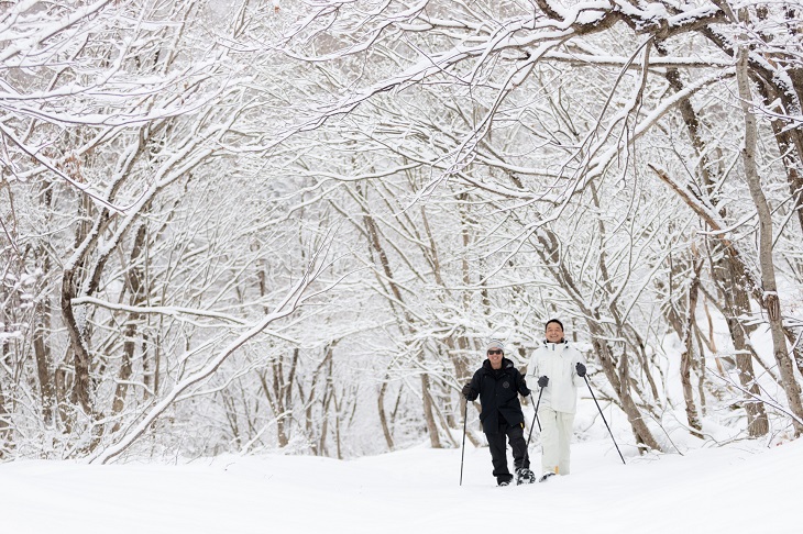 しばらく歩いていると、木々の枝に雪が付いて美しいトンネルのようになっているポイントも通過。あまりの素晴らしさ、気持ちよさに自然な笑顔が浮かんでくるはずだ。